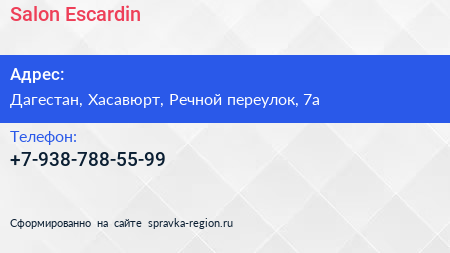 Salon Escardin по адресу Дагестан, Хасавюрт, Речной переулок, 7а в дальнейшем Организация, размещена в следующих категориях: