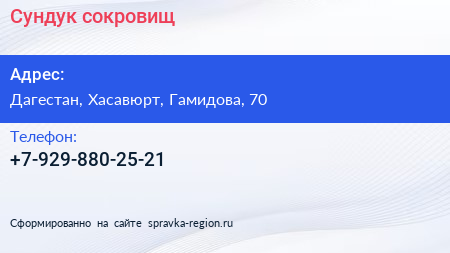 Сундук сокровищ по адресу Дагестан, Хасавюрт, Гамидова, 70 в дальнейшем Организация, размещена в следующих категориях: