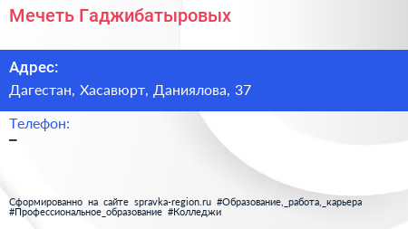 Мечеть Гаджибатыровых по адресу Дагестан, Хасавюрт, Даниялова, 37 в дальнейшем Организация, размещена в следующих категориях: