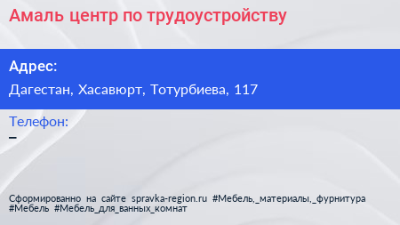Амаль, центр по трудоустройству по адресу Дагестан, Хасавюрт, Тотурбиева, 117 в дальнейшем Организация, размещена в следующих категориях: