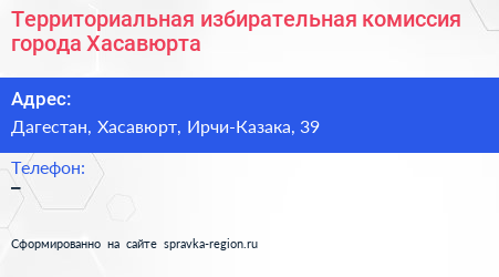 Территориальная избирательная комиссия города Хасавюрта по адресу Дагестан, Хасавюрт, Ирчи-Казака, 39 в дальнейшем Организация, размещена в следующих категориях: