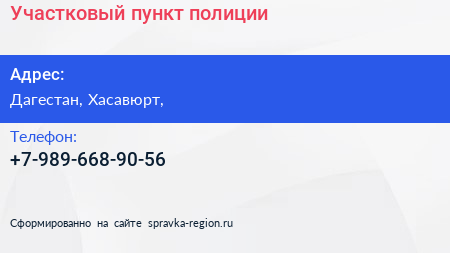 Участковый пункт полиции по адресу Дагестан, Хасавюрт, в дальнейшем Организация, размещена в следующих категориях: