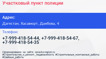 Участковый пункт полиции по адресу Дагестан, Хасавюрт, Даибова, 4 в дальнейшем Организация, размещена в следующих категориях: