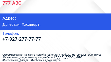 777, АЗС по адресу Дагестан, Хасавюрт, в дальнейшем Организация, размещена в следующих категориях: