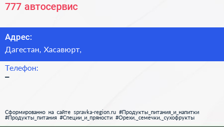777, автосервис по адресу Дагестан, Хасавюрт, в дальнейшем Организация, размещена в следующих категориях: