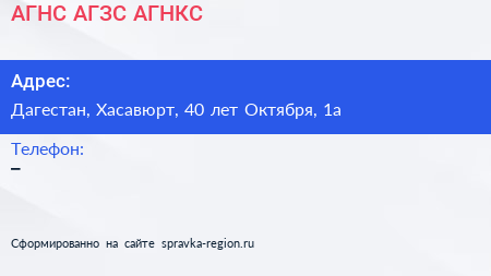 АГНС, АГЗС, АГНКС по адресу Дагестан, Хасавюрт, 40 лет Октября, 1а в дальнейшем Организация, размещена в следующих категориях: