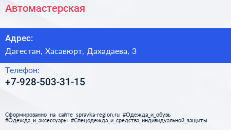 Автомастерская по адресу Дагестан, Хасавюрт, Дахадаева, 3 в дальнейшем Организация, размещена в следующих категориях:
