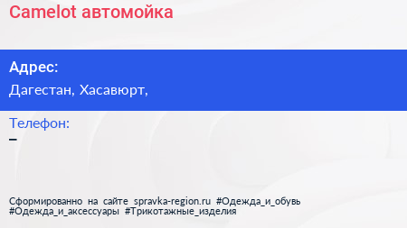 Camelot, автомойка по адресу Дагестан, Хасавюрт, в дальнейшем Организация, размещена в следующих категориях: