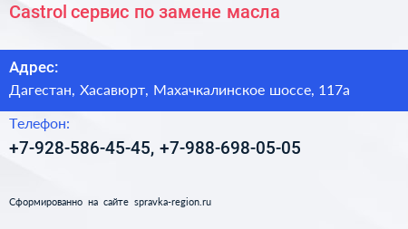 Castrol, сервис по замене масла в Хасавюрте