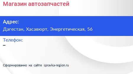 Магазин автозапчастей по адресу Дагестан, Хасавюрт, Энергетическая, 56 в дальнейшем Организация, размещена в следующих категориях: