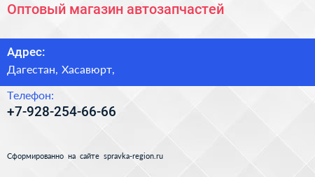 Оптовый магазин автозапчастей по адресу Дагестан, Хасавюрт, в дальнейшем Организация, размещена в следующих категориях: