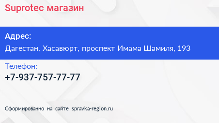 Suprotec, магазин по адресу Дагестан, Хасавюрт, проспект Имама Шамиля, 193 в дальнейшем Организация, размещена в следующих категориях: