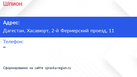 Шпион по адресу Дагестан, Хасавюрт, 2-й Фермерский проезд, 11 в дальнейшем Организация, размещена в следующих категориях: