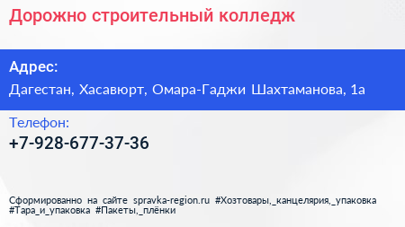 Дорожно-строительный колледж по адресу Дагестан, Хасавюрт, Омара-Гаджи Шахтаманова, 1а в дальнейшем Организация, размещена в следующих категориях: