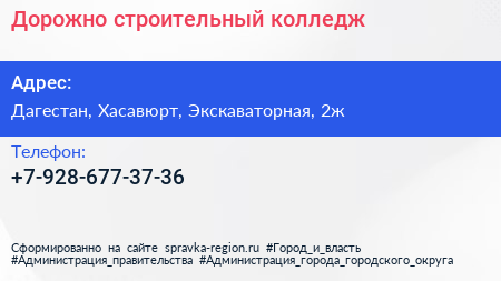 Дорожно-строительный колледж по адресу Дагестан, Хасавюрт, Экскаваторная, 2ж в дальнейшем Организация, размещена в следующих категориях: