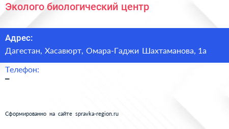 Эколого-биологический центр по адресу Дагестан, Хасавюрт, Омара-Гаджи Шахтаманова, 1а в дальнейшем Организация, размещена в следующих категориях: