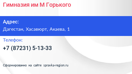 Гимназия им. М. Горького по адресу Дагестан, Хасавюрт, Акаева, 1 в дальнейшем Организация, размещена в следующих категориях: