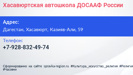 Хасавюртская автошкола, ДОСААФ России по адресу Дагестан, Хасавюрт, Казияв-Али, 59 в дальнейшем Организация, размещена в следующих категориях: