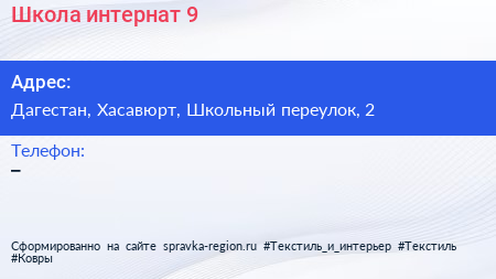 Школа-интернат №9 по адресу Дагестан, Хасавюрт, Школьный переулок, 2 в дальнейшем Организация, размещена в следующих категориях: