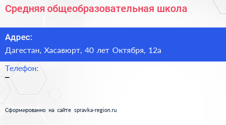 Средняя общеобразовательная школа по адресу Дагестан, Хасавюрт, 40 лет Октября, 12а в дальнейшем Организация, размещена в следующих категориях: