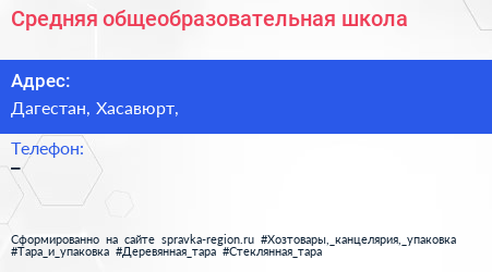Средняя общеобразовательная школа по адресу Дагестан, Хасавюрт, в дальнейшем Организация, размещена в следующих категориях: