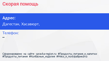 Скорая помощь по адресу Дагестан, Хасавюрт, в дальнейшем Организация, размещена в следующих категориях:
