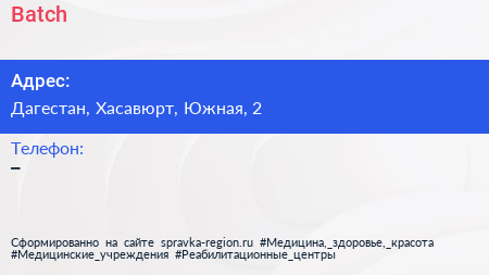 Batch по адресу Дагестан, Хасавюрт, Южная, 2 в дальнейшем Организация, размещена в следующих категориях: