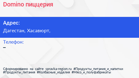 Domino, пиццерия по адресу Дагестан, Хасавюрт, в дальнейшем Организация, размещена в следующих категориях: