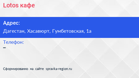 Lotos, кафе по адресу Дагестан, Хасавюрт, Гумбетовская, 1а в дальнейшем Организация, размещена в следующих категориях: