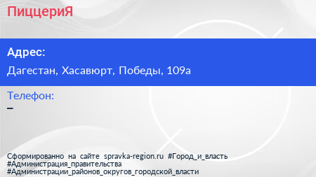 ПиццериЯ по адресу Дагестан, Хасавюрт, Победы, 109а в дальнейшем Организация, размещена в следующих категориях: