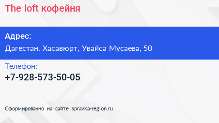 The loft, кофейня по адресу Дагестан, Хасавюрт, Увайса Мусаева, 50 в дальнейшем Организация, размещена в следующих категориях: