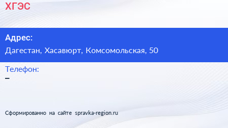 ХГЭС по адресу Дагестан, Хасавюрт, Комсомольская, 50 в дальнейшем Организация, размещена в следующих категориях: