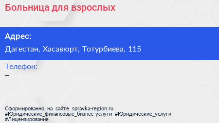 Больница для взрослых по адресу Дагестан, Хасавюрт, Тотурбиева, 115 в дальнейшем Организация, размещена в следующих категориях: