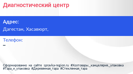 Диагностический центр по адресу Дагестан, Хасавюрт, в дальнейшем Организация, размещена в следующих категориях: