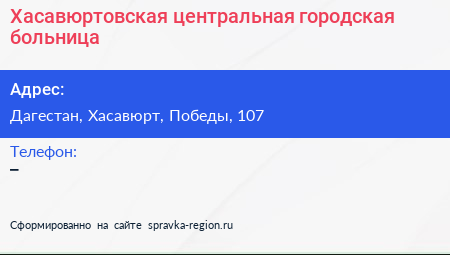 Хасавюртовская центральная городская больница по адресу Дагестан, Хасавюрт, Победы, 107 в дальнейшем Организация, размещена в следующих категориях: