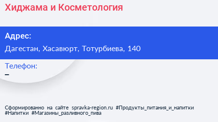 Хиджама и Косметология по адресу Дагестан, Хасавюрт, Тотурбиева, 140 в дальнейшем Организация, размещена в следующих категориях: