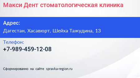 Макси Дент, стоматологическая клиника по адресу Дагестан, Хасавюрт, Шейха Тажудина, 13 в дальнейшем Организация, размещена в следующих категориях:
