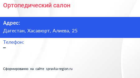 Ортопедический салон по адресу Дагестан, Хасавюрт, Алиева, 25 в дальнейшем Организация, размещена в следующих категориях: