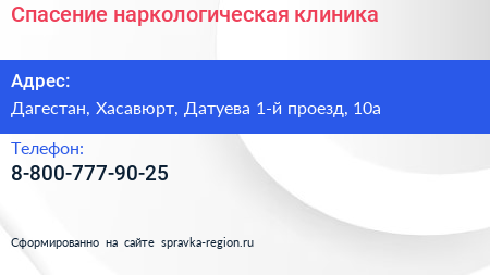 Спасение, наркологическая клиника по адресу Дагестан, Хасавюрт, Датуева 1-й проезд, 10а в дальнейшем Организация, размещена в следующих категориях: