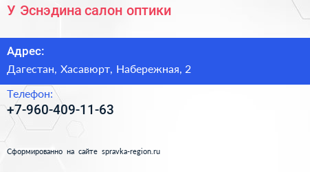 У Эснэдина, салон оптики в Хасавюрте