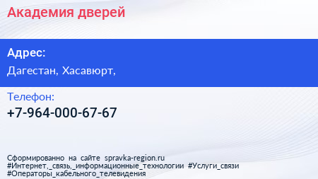 Академия дверей по адресу Дагестан, Хасавюрт, в дальнейшем Организация, размещена в следующих категориях: