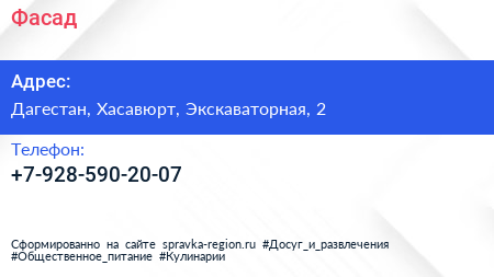 Фасад по адресу Дагестан, Хасавюрт, Экскаваторная, 2 в дальнейшем Организация, размещена в следующих категориях: