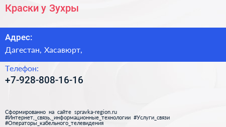 Краски у Зухры по адресу Дагестан, Хасавюрт, в дальнейшем Организация, размещена в следующих категориях: