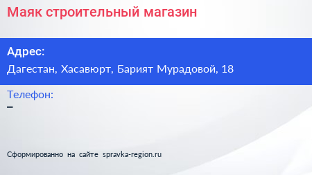 Маяк, строительный магазин по адресу Дагестан, Хасавюрт, Барият Мурадовой, 18 в дальнейшем Организация, размещена в следующих категориях: