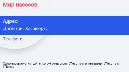 Мир насосов по адресу Дагестан, Хасавюрт, в дальнейшем Организация, размещена в следующих категориях: