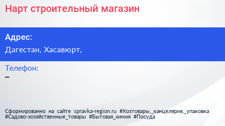 Нарт, строительный магазин по адресу Дагестан, Хасавюрт, в дальнейшем Организация, размещена в следующих категориях: