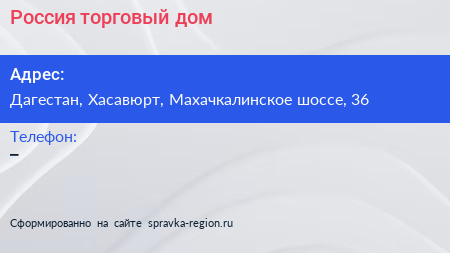 Россия, торговый дом по адресу Дагестан, Хасавюрт, Махачкалинское шоссе, 36 в дальнейшем Организация, размещена в следующих категориях: