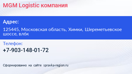 MGM Logistic, компания по адресу 125445, Московская область, Химки, Шереметьевское шоссе, вл6к в дальнейшем Организация, размещена в следующих категориях: