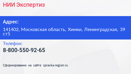 НИИ Экспертиз по адресу 141402, Московская область, Химки, Ленинградская, 39 ст5 в дальнейшем Организация, размещена в следующих категориях: