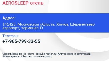 AEROSLEEP, отель по адресу 141425, Московская область, Химки, Шереметьево аэропорт, терминал D в дальнейшем Организация, размещена в следующих категориях: